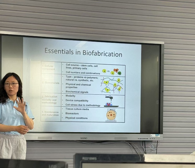 Associate Professor Menglin Chen from Aarhus University, Denmark, presented a series of courses on “Biofabrication.” Focusing on nanofiber biofabrication technologies, she elaborated on electrohydrodynamic spinning techniques for tissue engineering. She also emphasized the role of nanofiber-based biomaterials in enhancing cellular processes. Her groundbreaking achievements in electrospinning and 3D printing deepened students’ understanding of the advancements in biofabrication.